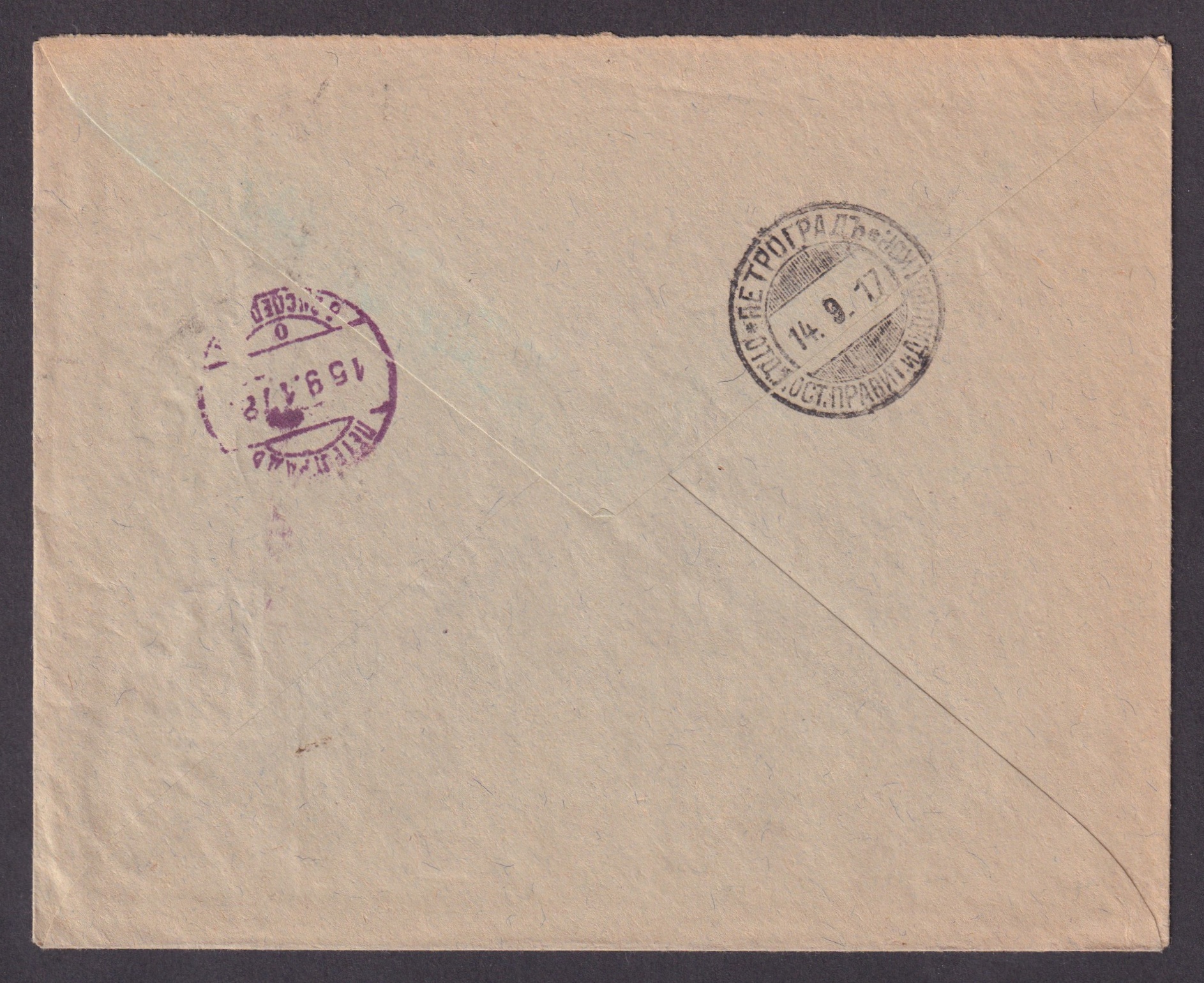 Российская империя. Заказное письмо из Твери в Петроград со штампом «Отд. дост. правит и диплом кор.».