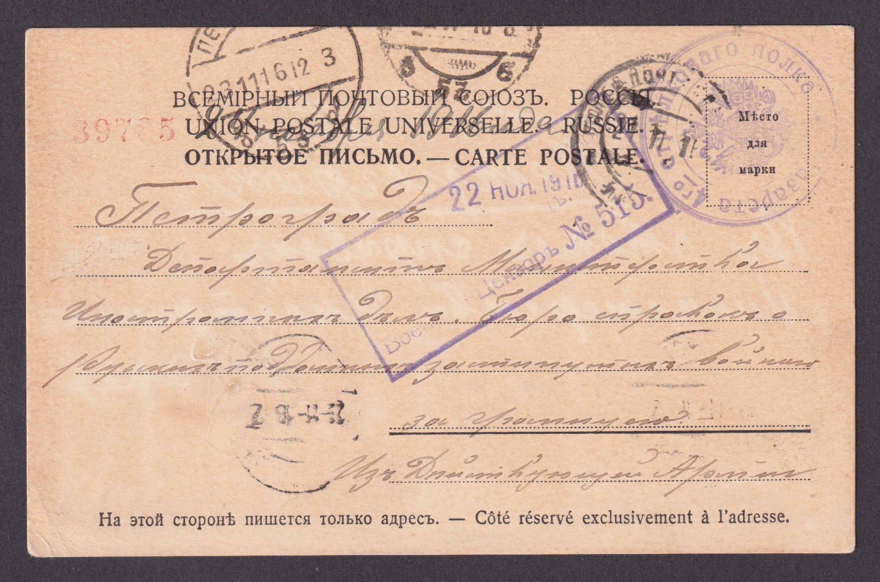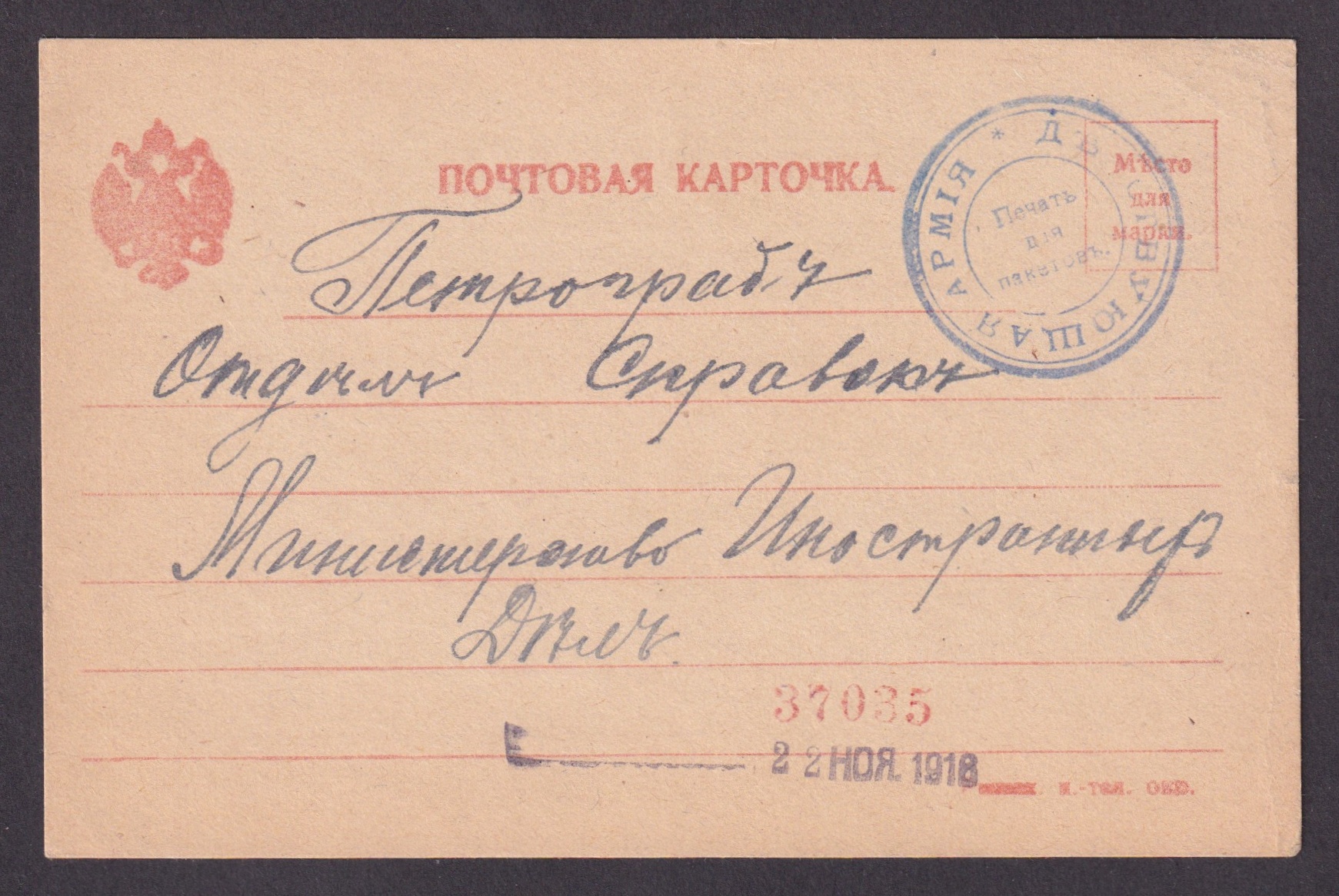 Российская империя. Из Действующей Армии открытое письмо в Петроград.