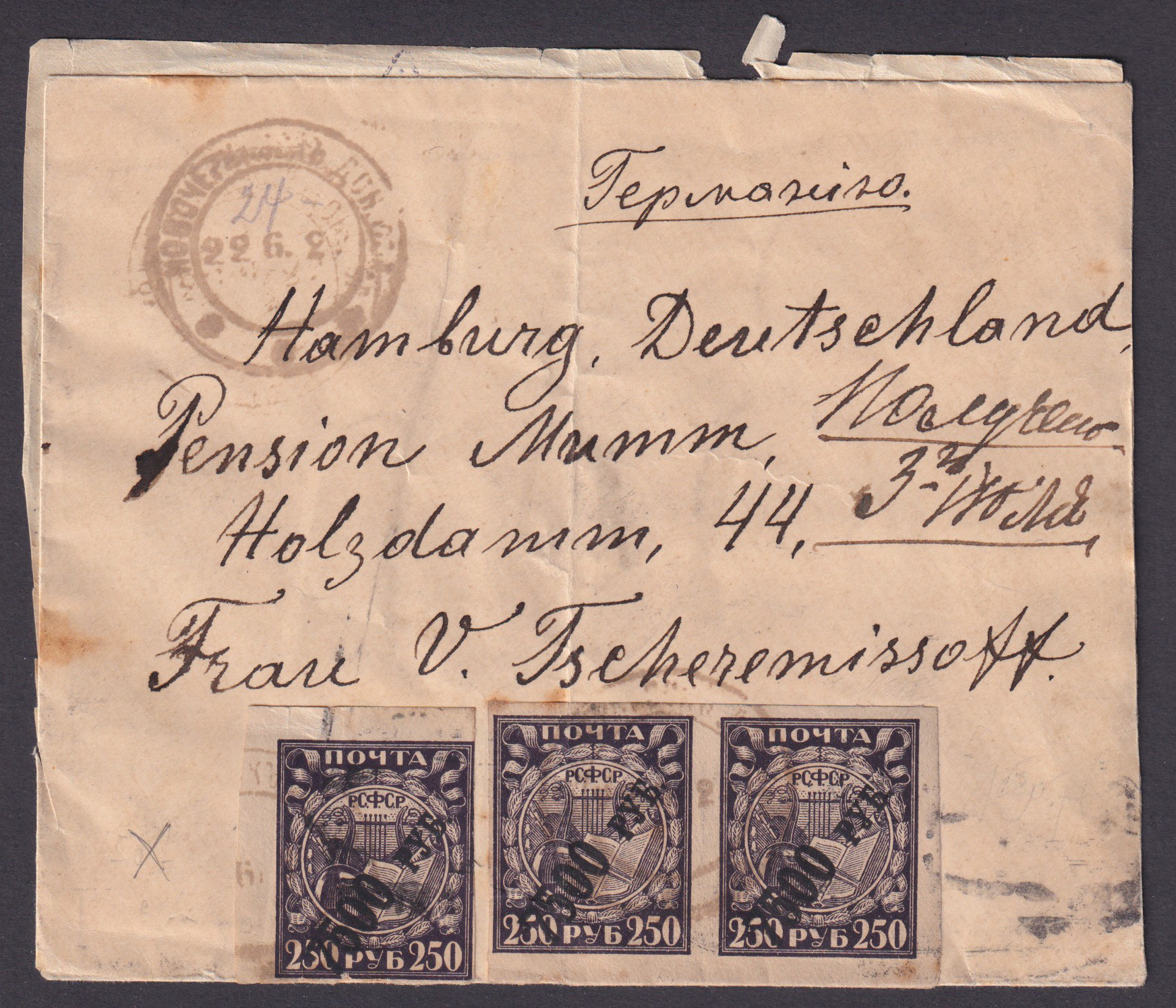 СССР. Почтовое отправление из Новочеркасска 22.06.23 в Гамбург.