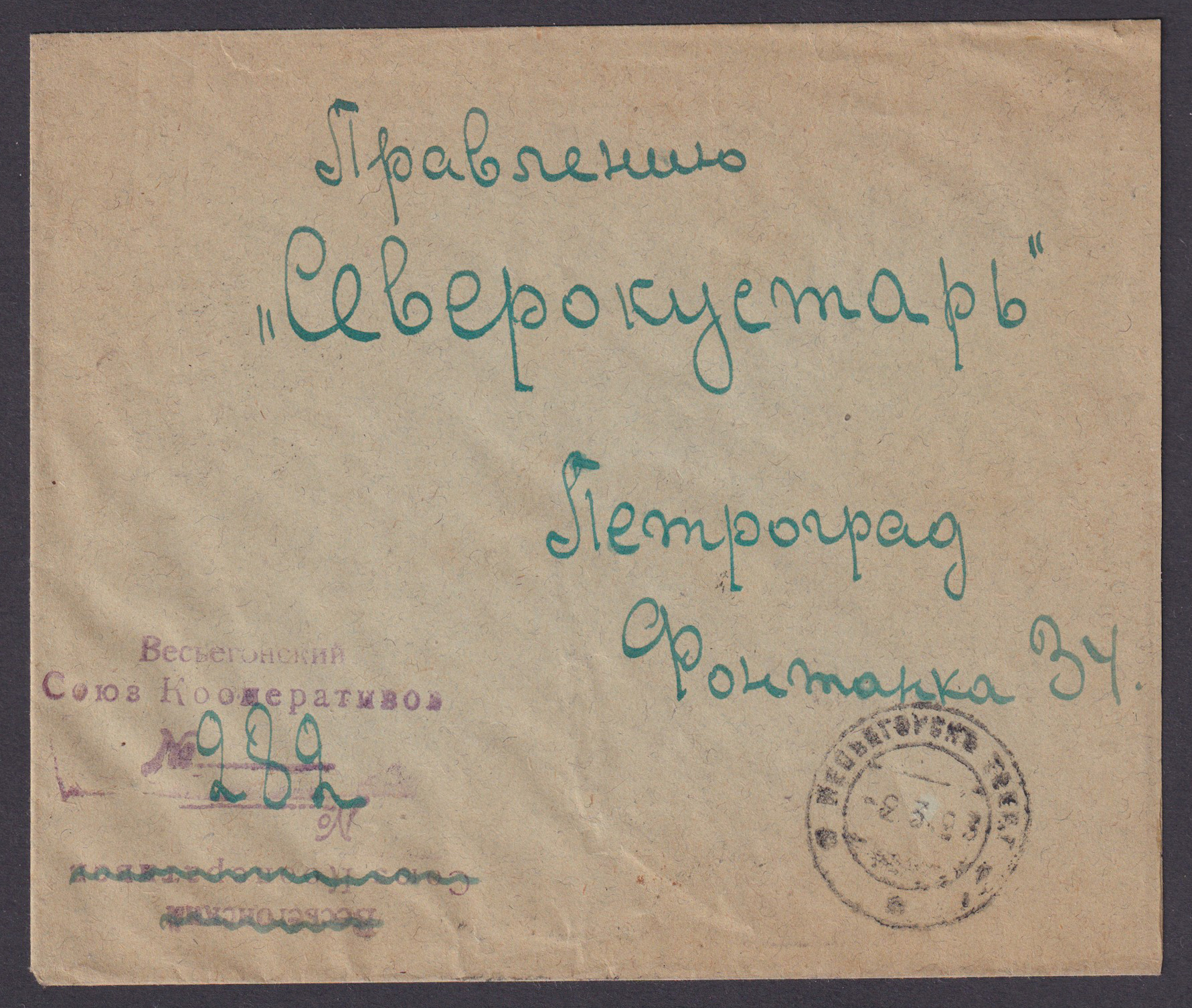 СССР. Почтовое отправление из Весьегонска 02.03.23 в Петроград 06.03.23.