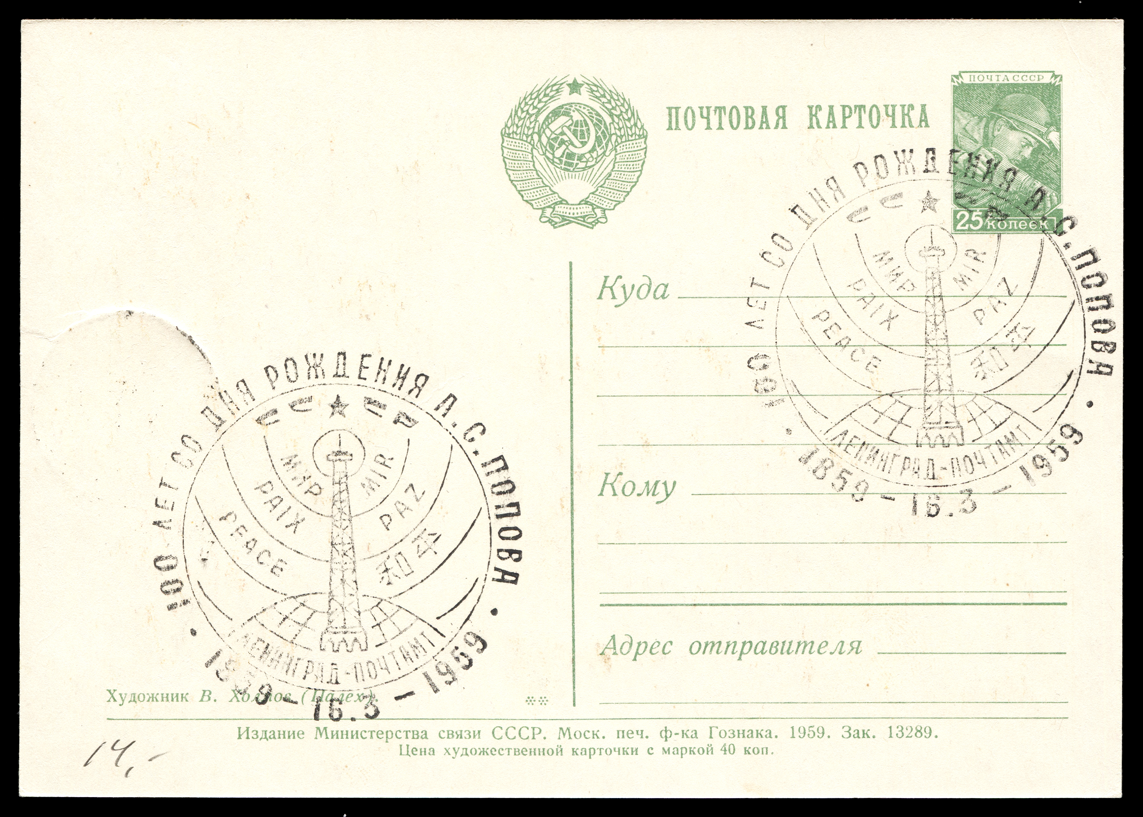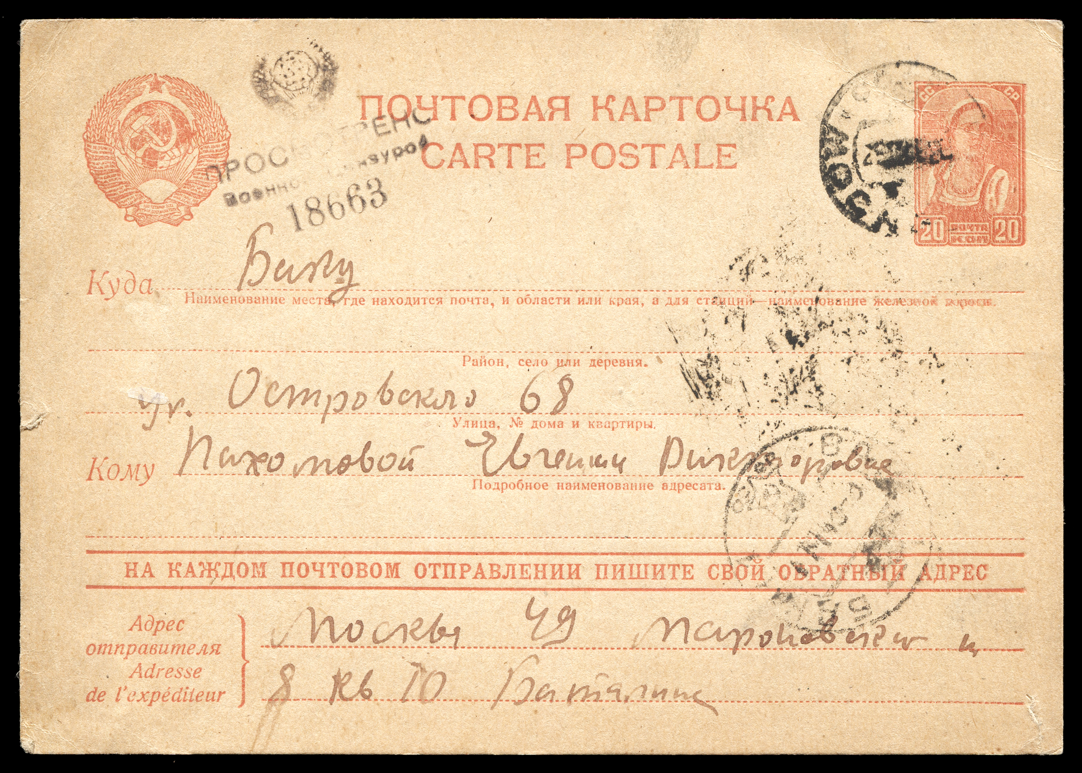 СССР. Иллюстрированная почтовая карточка в Кострому.