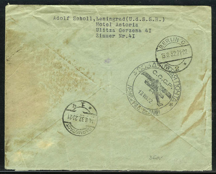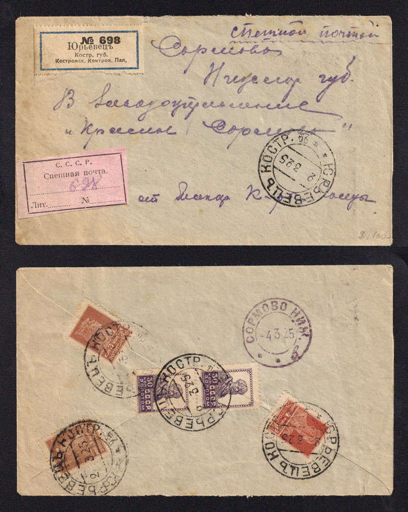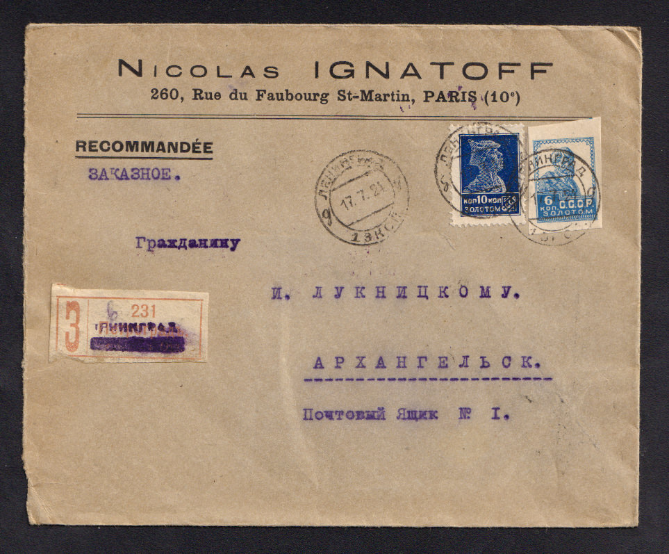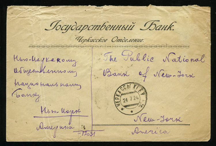 На конверте марки №№ 46, РЕ 2 I (недопечатан нижний орнамент; недопечатана вторая "С")