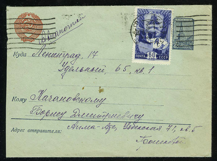На конверте марки №№ 411, 442