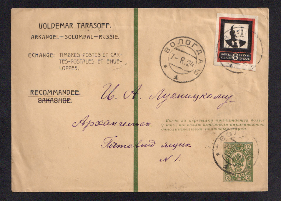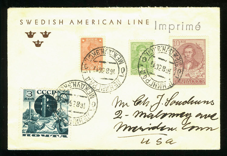На конверте марки №№ 59, 60 I, 61, 62, PE 2 А III - заграничный обмен.