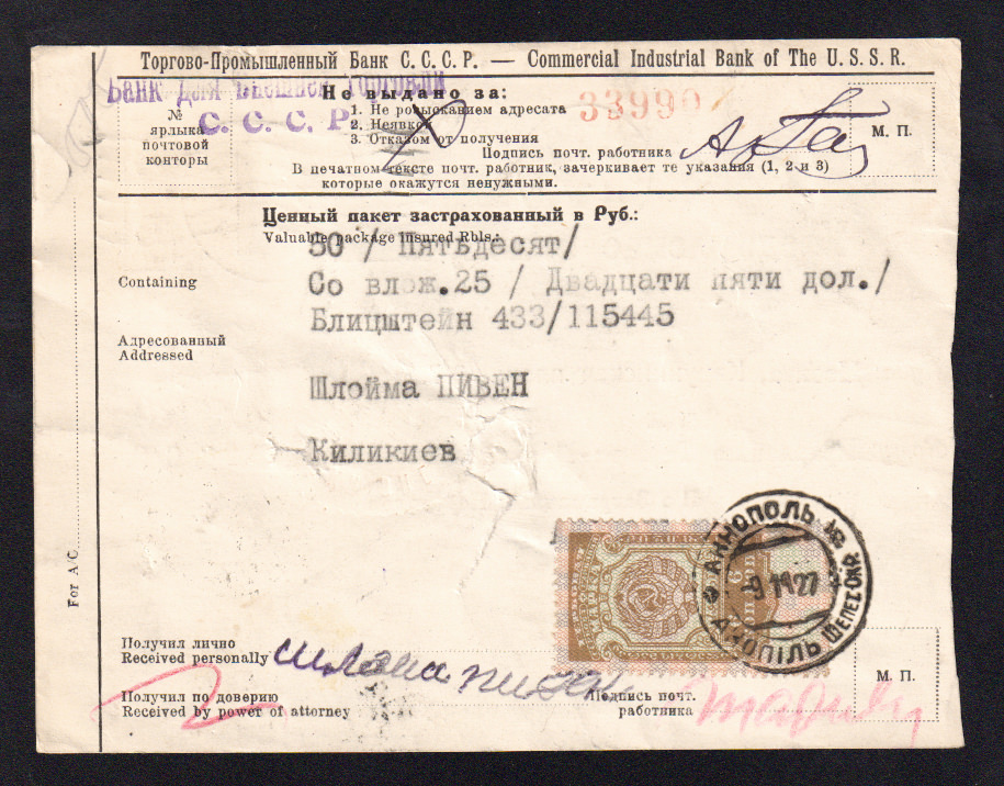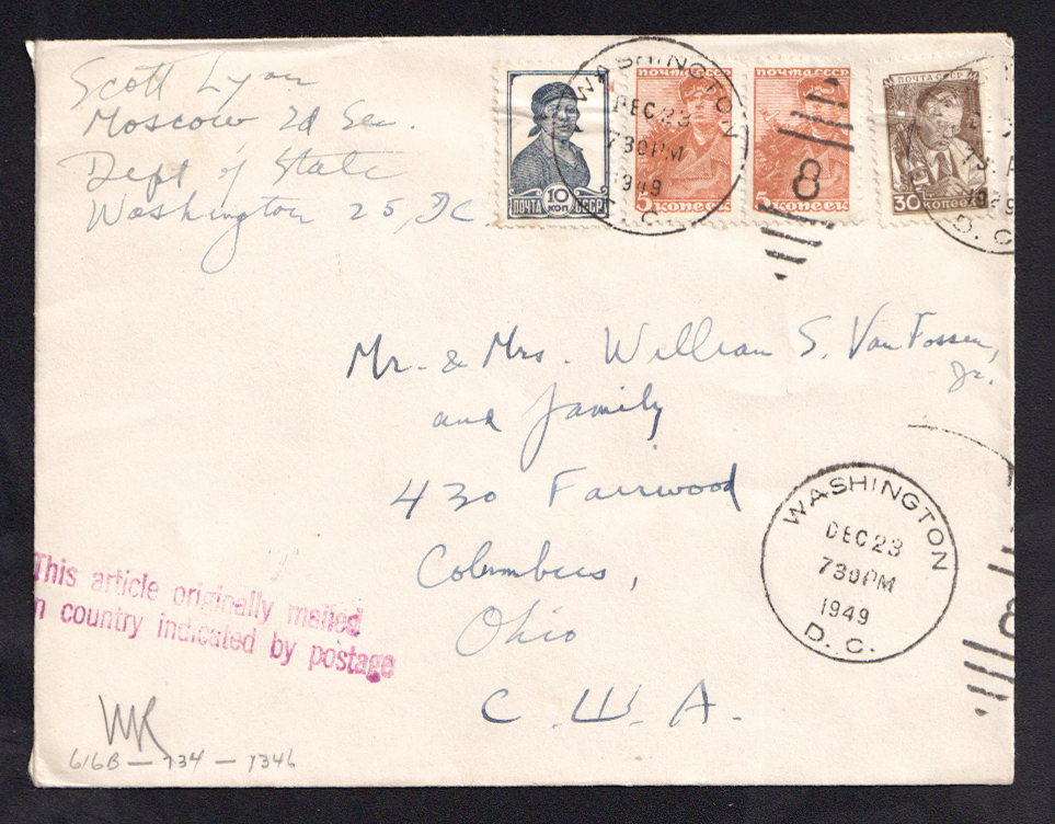 Штамп: "This article originally mailed in country by postage".