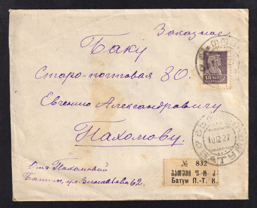 На конверте марки № 18, 27 B