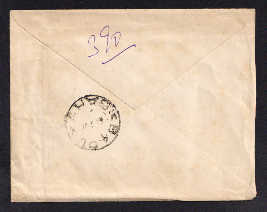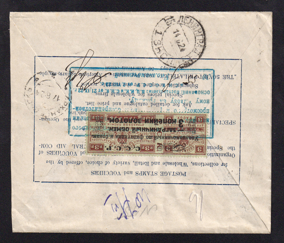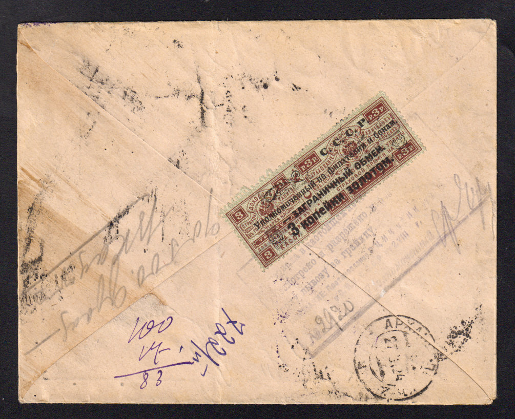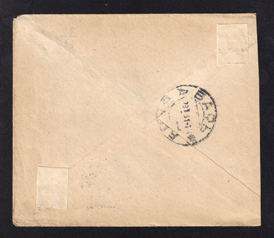 На обороте марка "заграничного обмена" № PE 14
