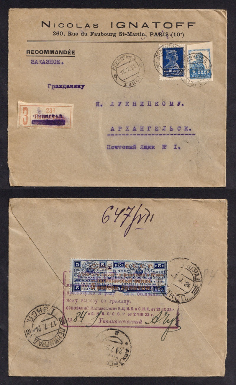 На конверте марки №№ 187, 254, 259 A
