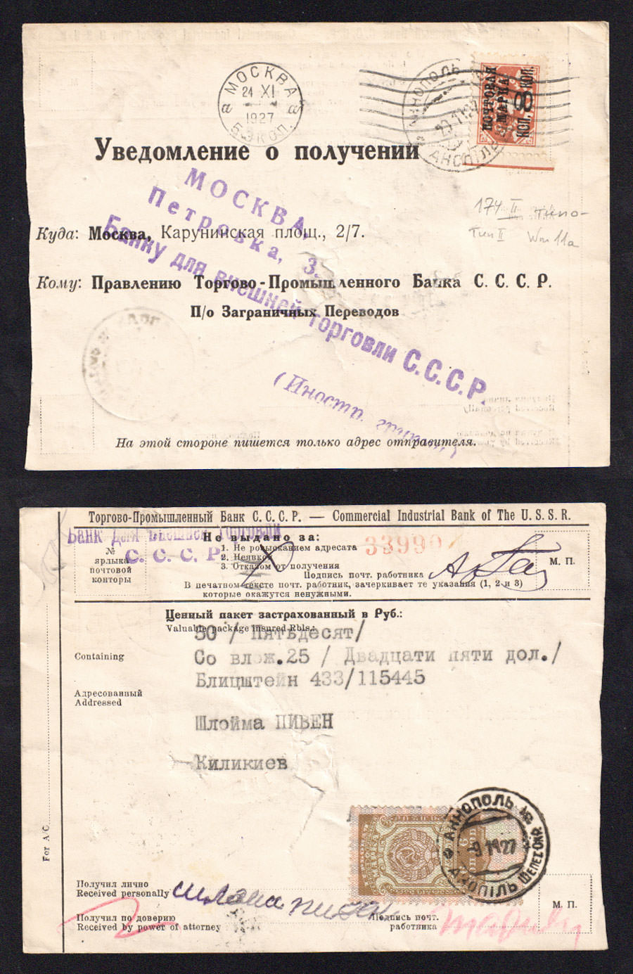 На уведомлении марка № 174 II и гербовая марка