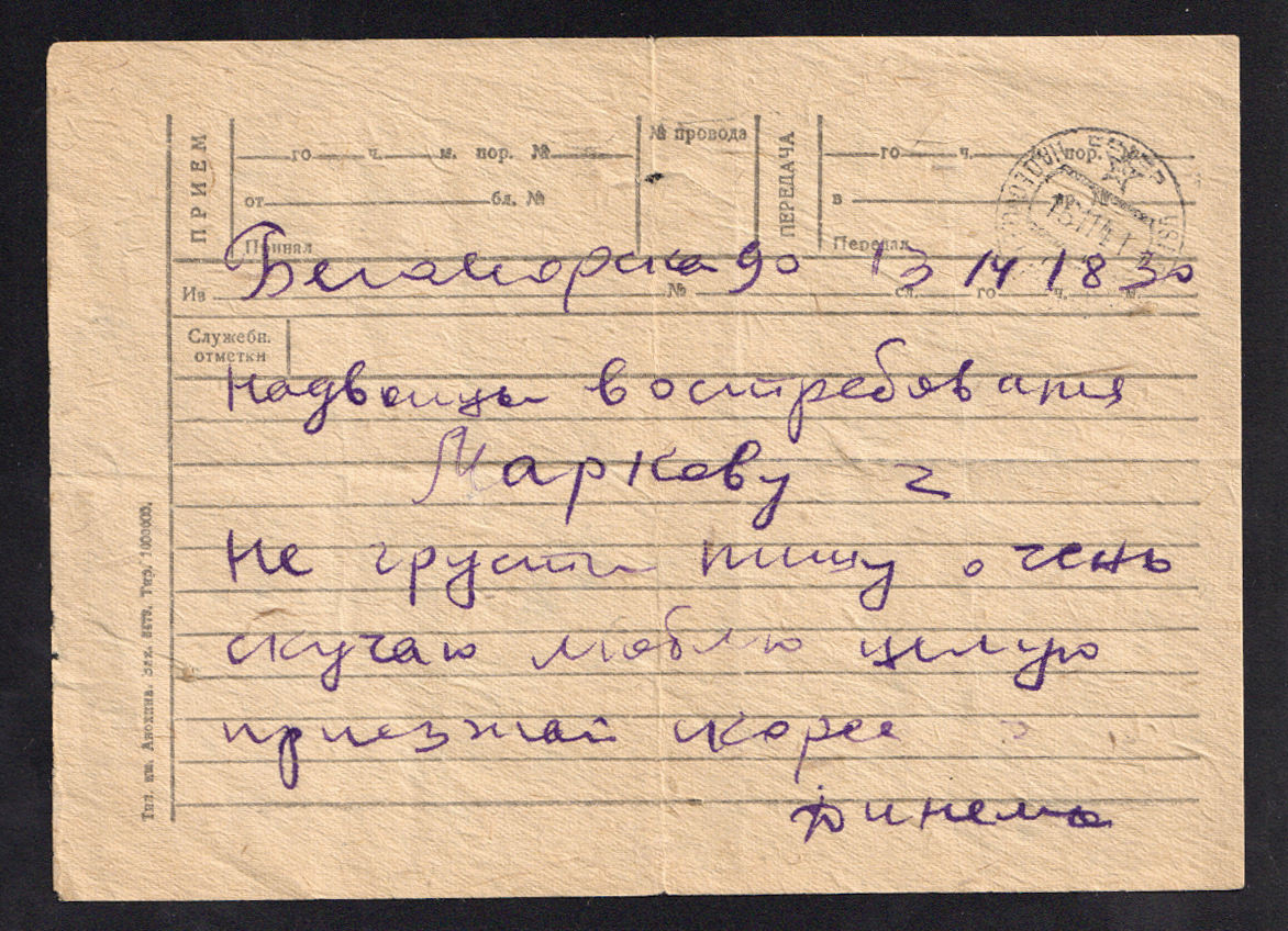 Штамп: "Красноармейское письмо. Бесплатно".