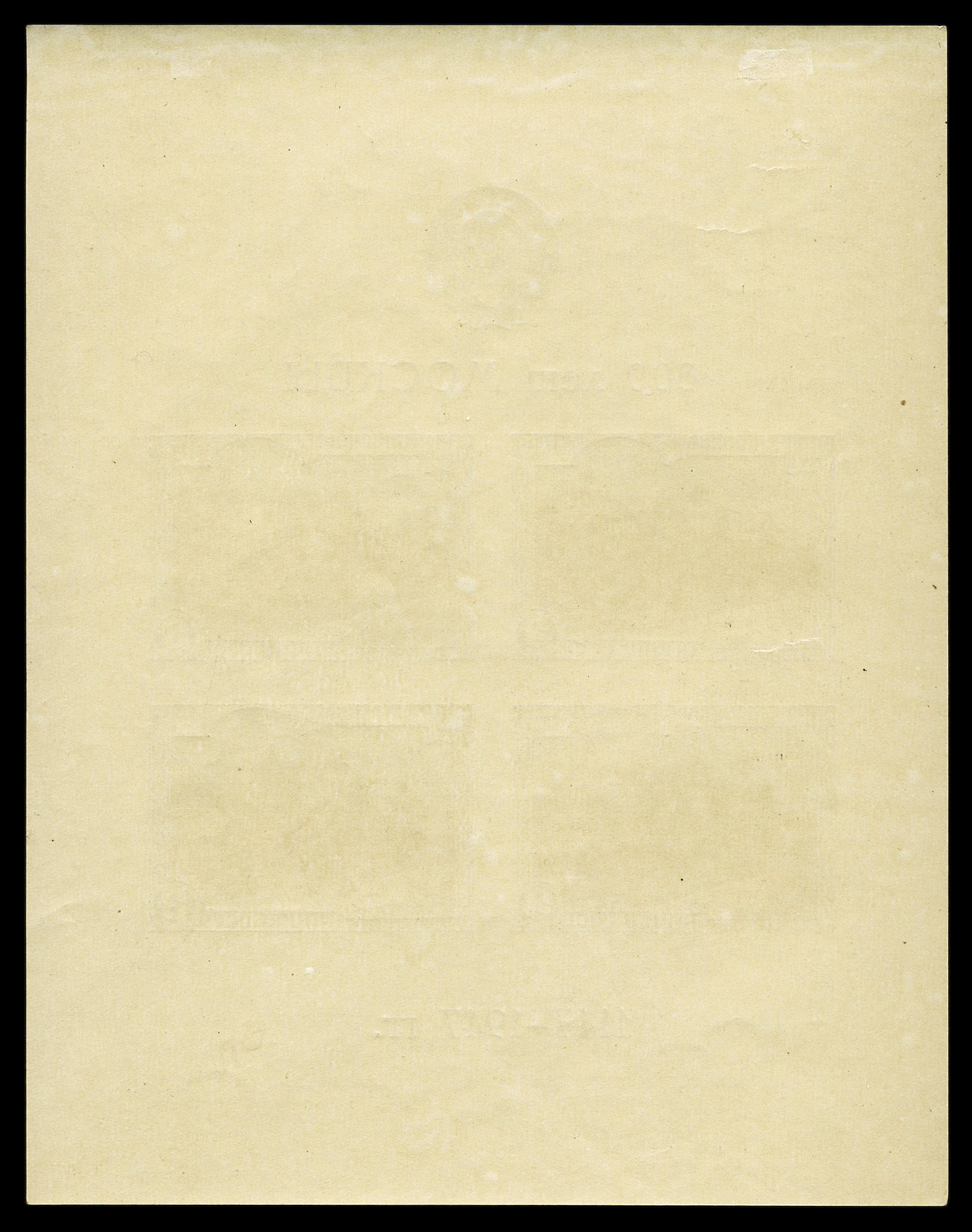 Блок тип I (фоновые линии расположены параллельно верхнему краю рамки). Шрифт расплывчатый. Бумага