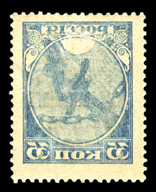 Кат. № 155. Разновидность: абкляч кадра. Печать: типографская. Бумага: с вертикальной меловой сеткой, без водяного знака. Без перфорации.