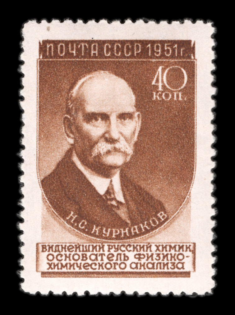 6) Д.И. Менделеев – химик. 40 к. Кат. № 1549(2), 1955-1956 гг. Второй выпуск (h 32 мм). Цвет: темно-синяя.