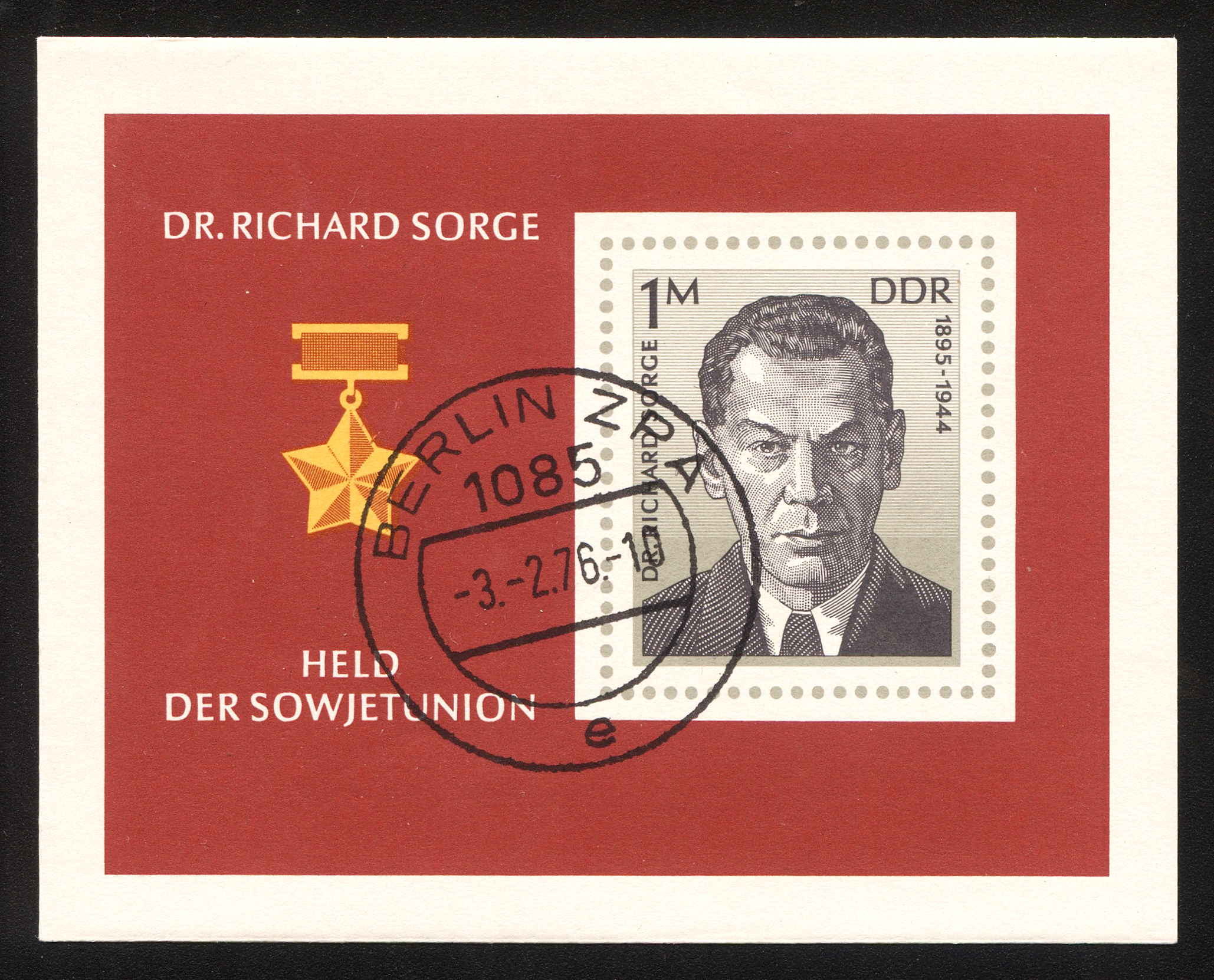 1976. Германия (ГДР). 80-летие со дня рождения доктора Рихарда Зорге.