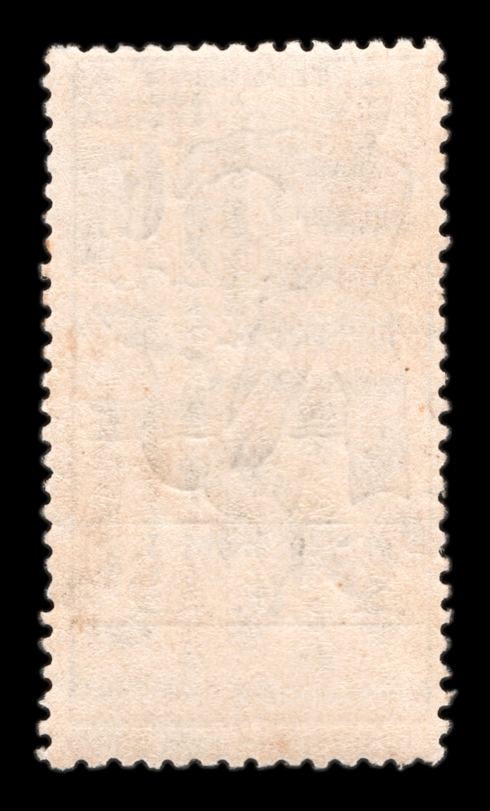 Кат. № 2 (3.1.1). Печать: типографская. Без перфорации. Гильошированный фон. Размер рисунка 28 х 51 мм.