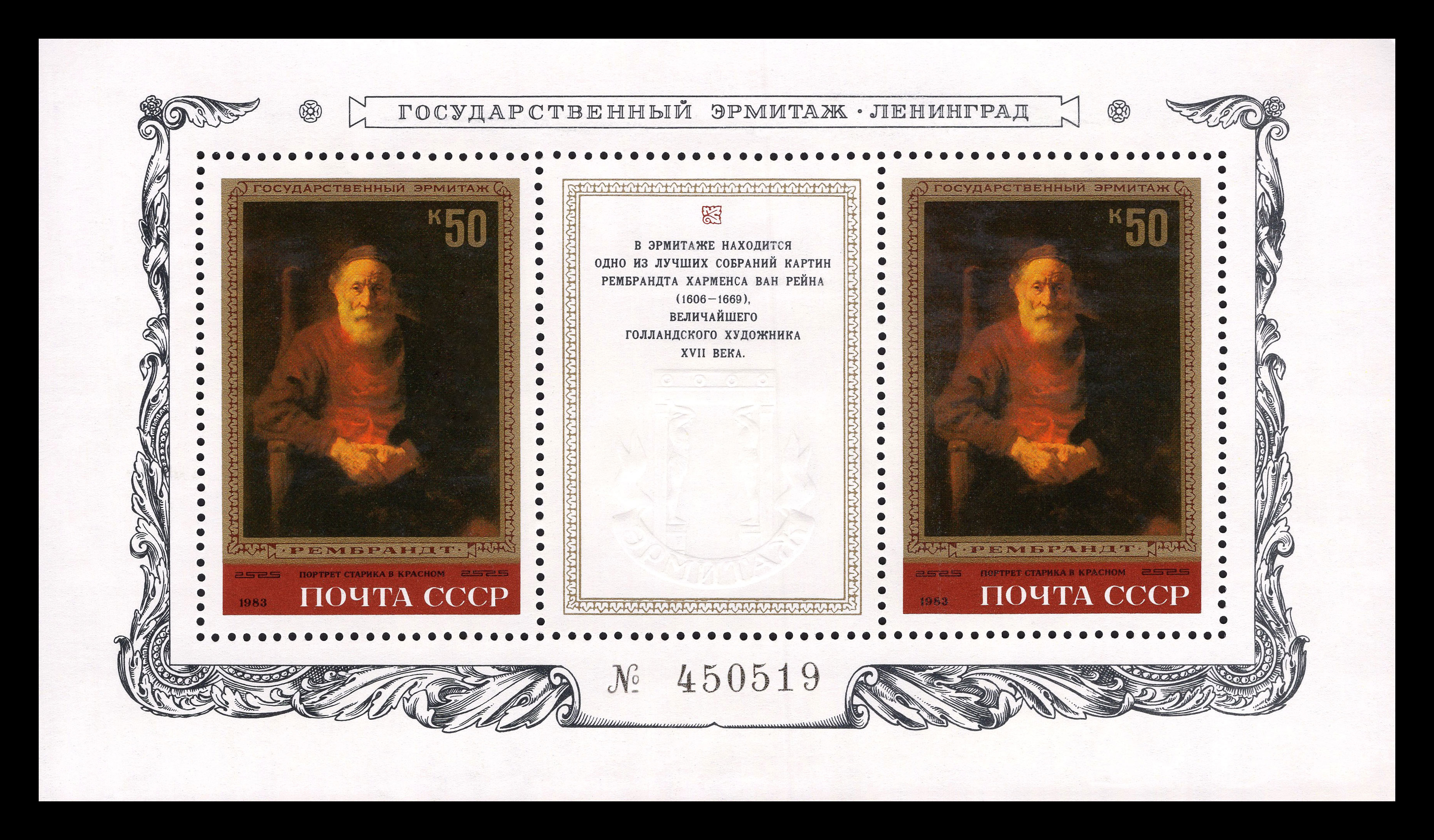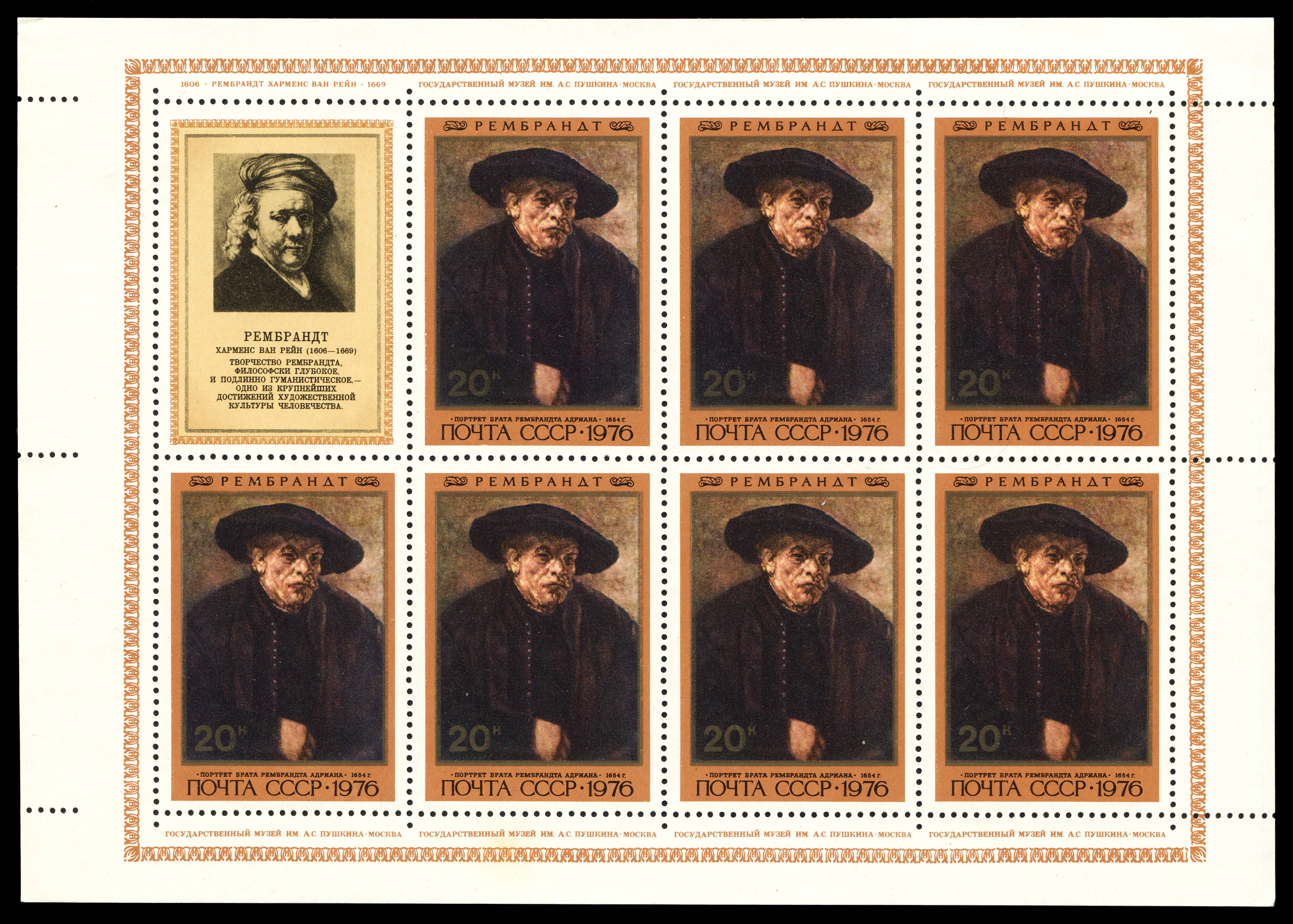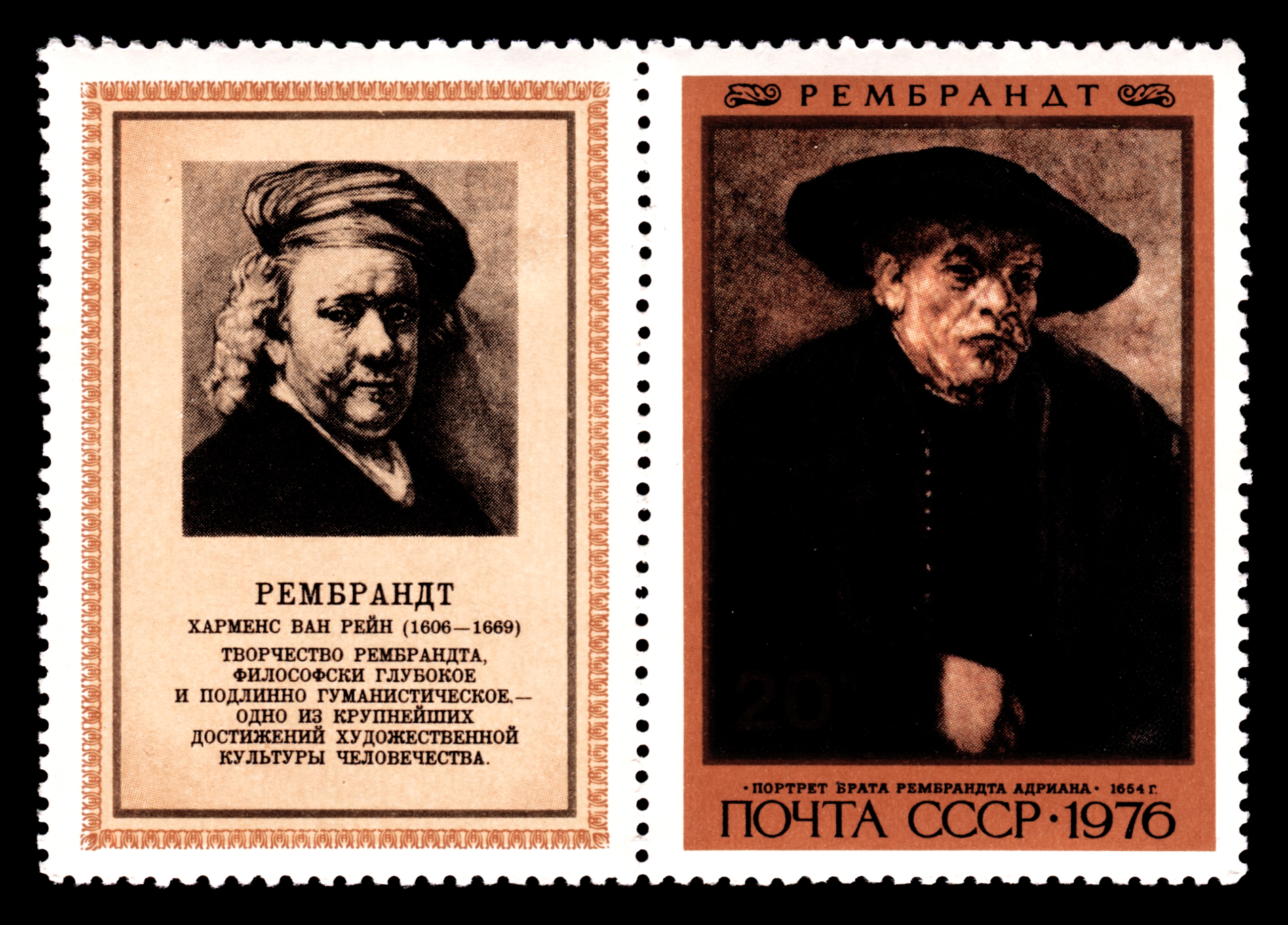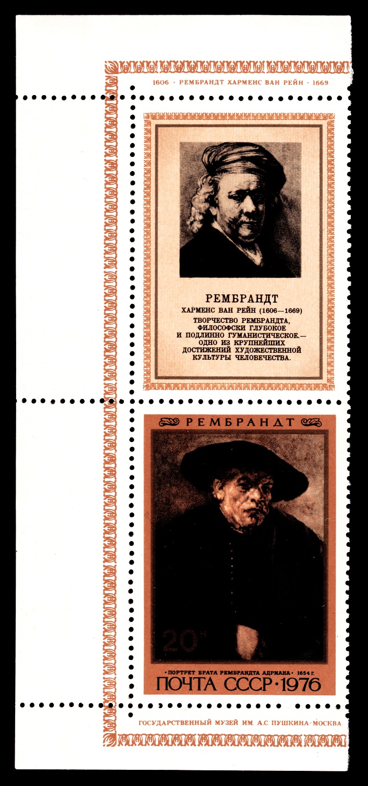 Набор 2 марки:1) "Притча о работниках на винограднике" 4 к. Кат. № 4601. Тираж – 6800 000. 2) "Портрет брата Рембрандта Адриана" 20 к. Кат. № 4605. Тираж – 4800 000. Печать: офсет с лакированием. Перфорация гребенчатая 12 : 12 1/2.