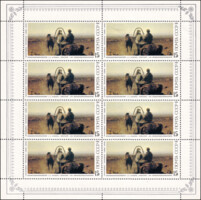 2) И.Н. Крамской «Христос в пустыне». 3 р. Кат. № 547. Тираж – 400 000. Печать: офсет с лакированием. Перфорация гребенчатая 12.