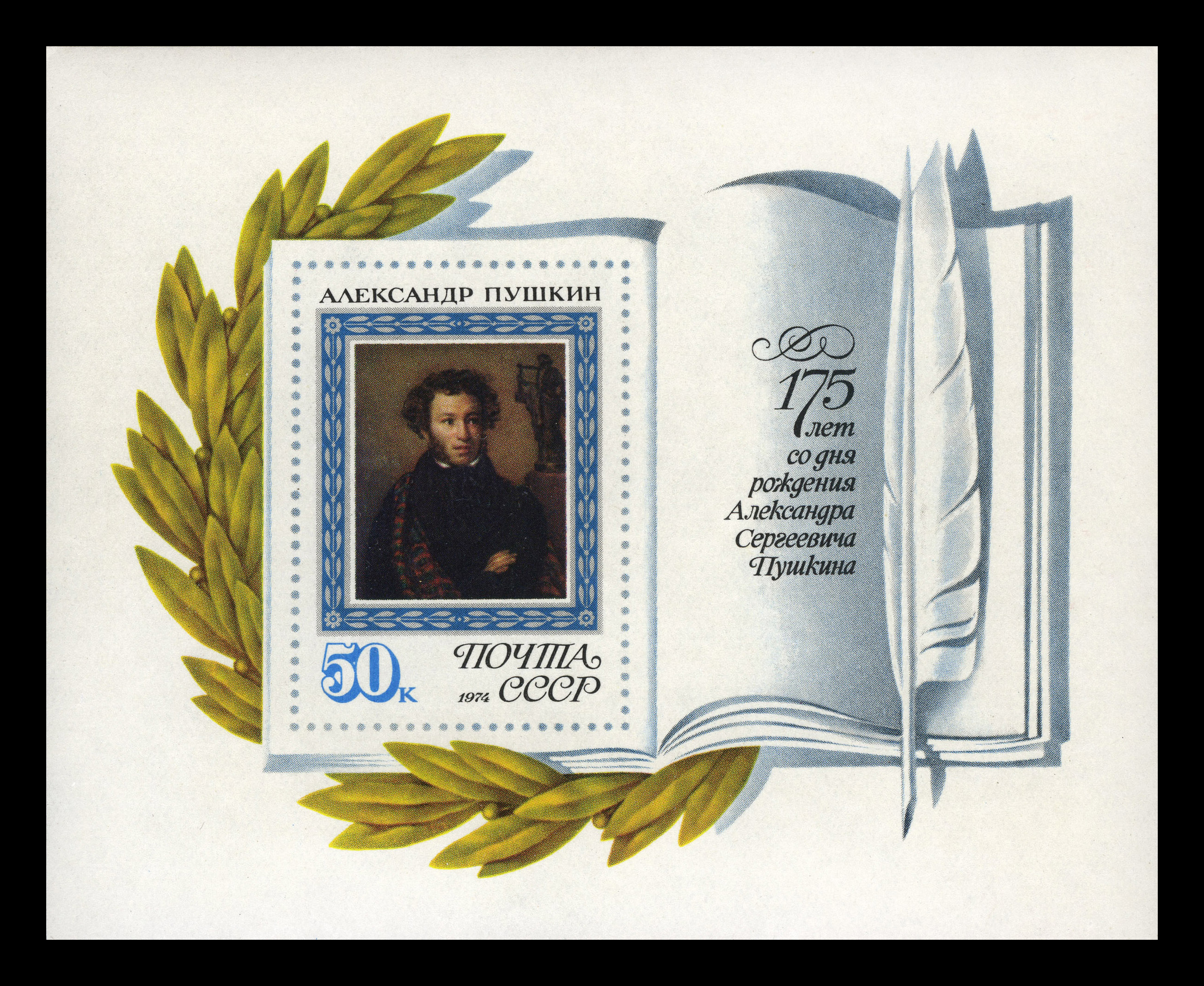 Штемпель первого дня: "150 лет со дня рождения А.С.Пушкина".