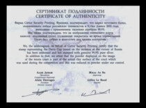 Кат. № Бл 45. На изображение корта нанесен измельченный подлинный грунт. К блоку приложен сертификат подлинности с текстом на русском и английском языках.