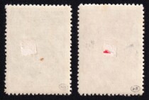 2) 20 к. + 2 к. Кат. № 250. Тираж – 750 000. Цвет: темно-зеленая. Печать: глубокая. oWmk – без водяного знака. Перфорация линейная 10 3/4. Бумага: БМ – бумага мелованная.