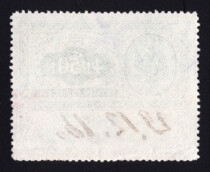 Кат. № 2. Непочтовая марка, текст: "Консульская пошлина". Гильошированный фон, образующий на талоне марки аббревиатуру "М. И. Д." (Министерство иностранных дел ). Печать: типографская. Цветной фон. Перфорация 13 1/2. Размер рисунка 37,5 х 29,5 мм.