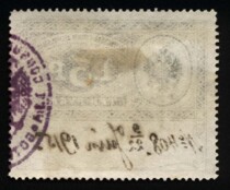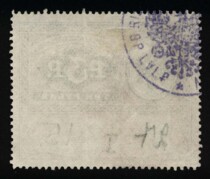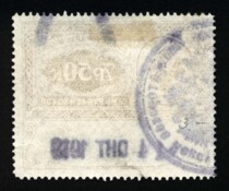 Кат. № 4. Непочтовая марка, текст: "Консульская пошлина". Гильошированный фон, образующий на талоне марки аббревиатуру "М. И. Д." (Министерство иностранных дел ). Печать: типографская. Цветной фон. Перфорация 13 1/2. Размер рисунка 37,5 х 29,5 мм.