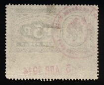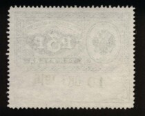 Кат. № 13. Непочтовая марка, текст: "Консульская пошлина". Гильошированный фон, образующий на талоне марки аббревиатуру "М. И. Д." (Министерство иностранных дел ). Печать: типографская. Цветной фон. Перфорация 13 1/2. Размер рисунка 40 х 31,5 мм.