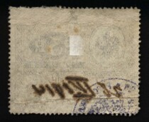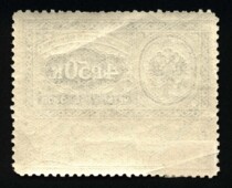 Кат. № 9. Непочтовая марка, текст: "Консульская пошлина". Гильошированный фон, образующий на талоне марки аббревиатуру "М. И. Д." (Министерство иностранных дел ). Печать: типографская. Цветной фон. Перфорация 13 1/2. Размер рисунка 40 х 31,5 мм.
