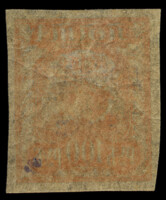 Разновидность. Кат. № 77I. Надпечатка литографская черного цвета пятиконечной звезды с серпом и молотом и нового номинала на марке 106 РИ. Перфорация рамочная 14 1/4 : 14 3/4.