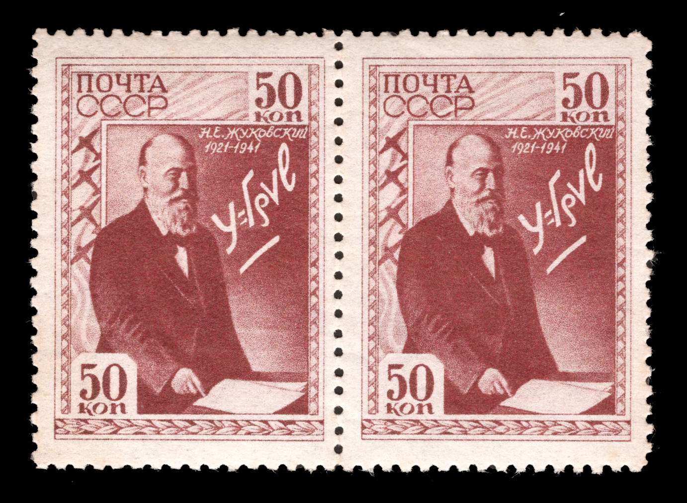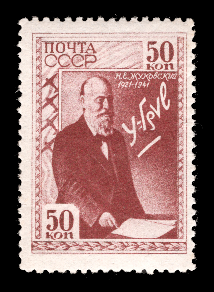 3) Н. Е. Жуковский. Формула подъемной силы крыла. 50 к. Кат. № 704. Тираж – 4000 000. Цвет: лиловая.