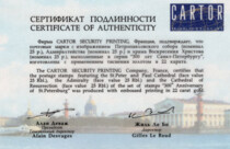 3) Вид Петропавловской крепости и Невы, фигура летящего ангела на шпиле Петропавловского собора. 25 р. Кат. № 746. Тираж – 150 000. Печать: офсет, конгрев золотом. Перфорация гребенчатая 13 1/2.