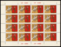 Кат. № Бл 165. Размер 136 х 80 мм. Тираж – 100 000. Печать: офсет с конгревом, бронзовая, серебряная и золотая паста. Перфорация рамочная 12 : 12 1/4, 12 1/4 : 12.
