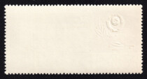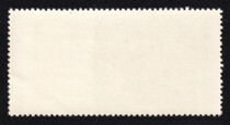 Кат. № 28. Разновидность не описана в каталоге. Сдвиг рисунка вправо. "Узкая" красная рамка 20-20,2 х 25,1 мм. Тираж – 500 000. Цвет: черная и красная. Печать: литографская, oWm. Без перфорации.