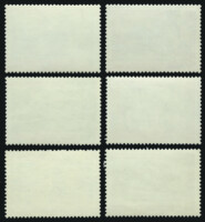 Кат. № 5324. Три правые марки верхнего ряда – штрих под правой частью "молнии". Цвет: голубая. Печать: офсет. Перфорация гребенчатая 12 : 12 1/2. Бумага простая.