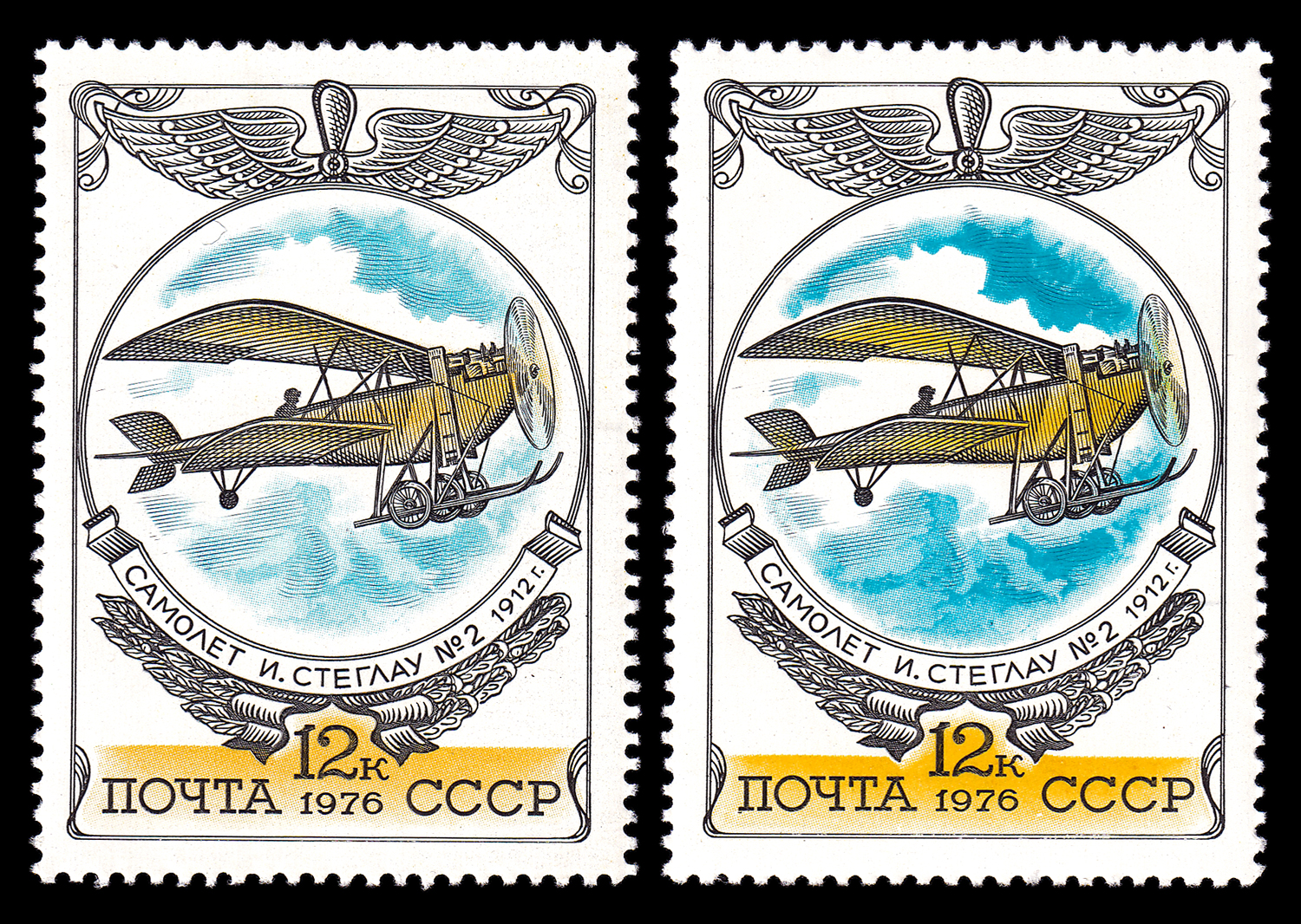 Представлена разновидность, не указанная в каталоге: не напечатан номинал на марке "Ми-8".