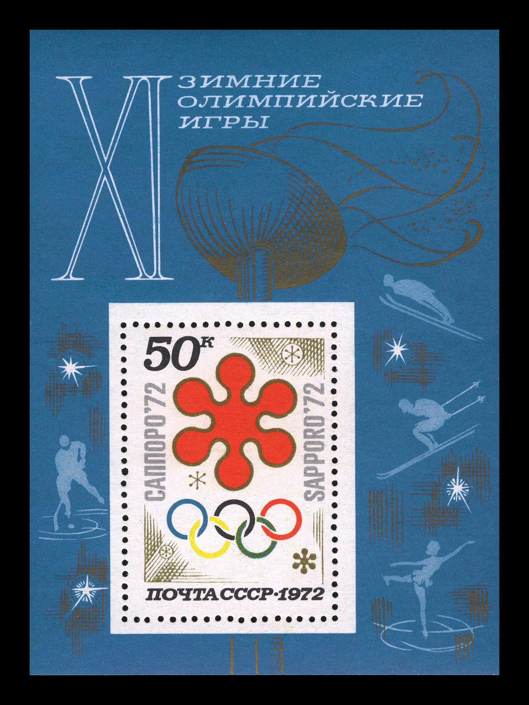 Кат. № Бл 78. Надпечатка типографская чёрная текста "Советские спортсмены завоевали 8 золотых медалей, 5 серебряных, 3 бронзовых" на Бл 77.
