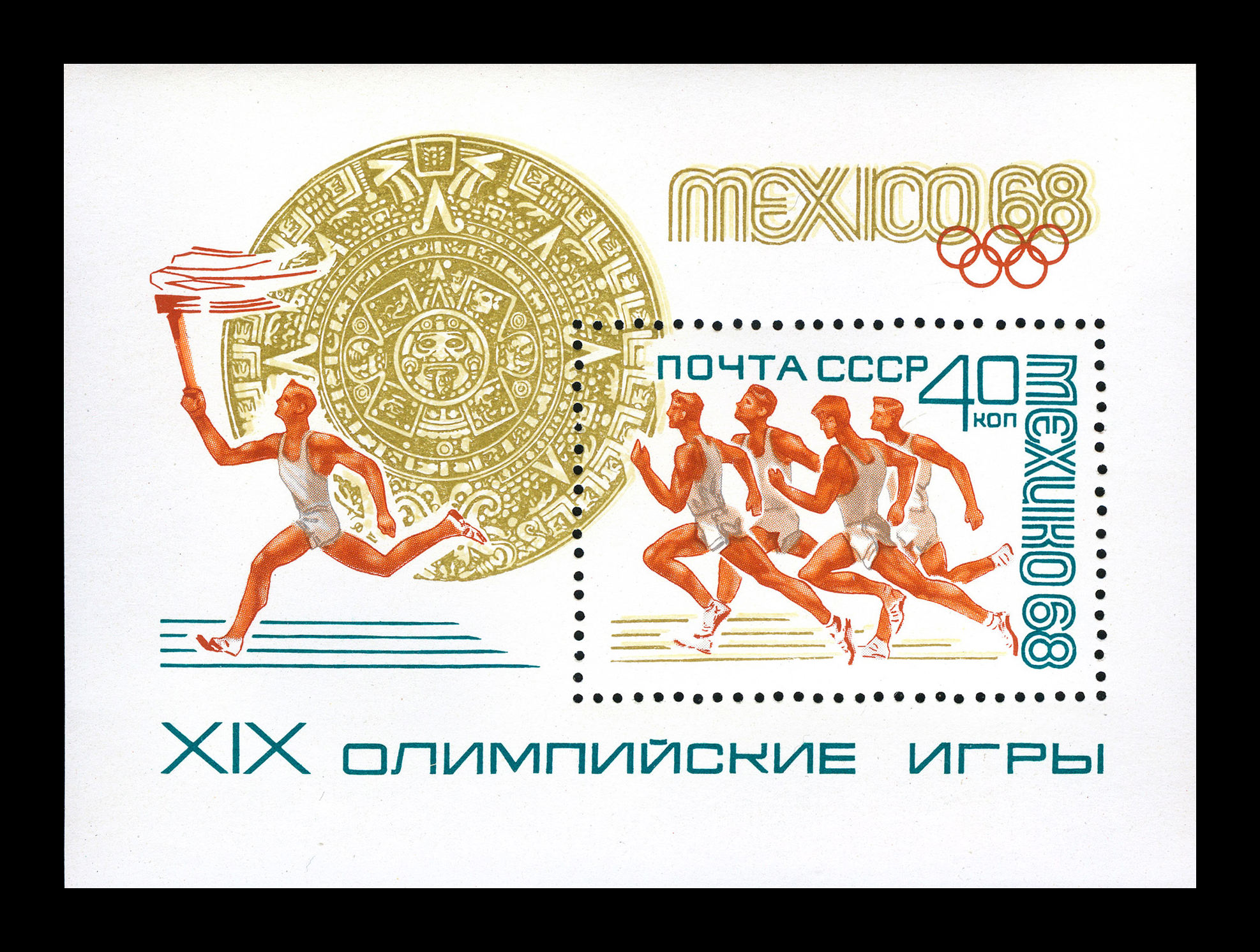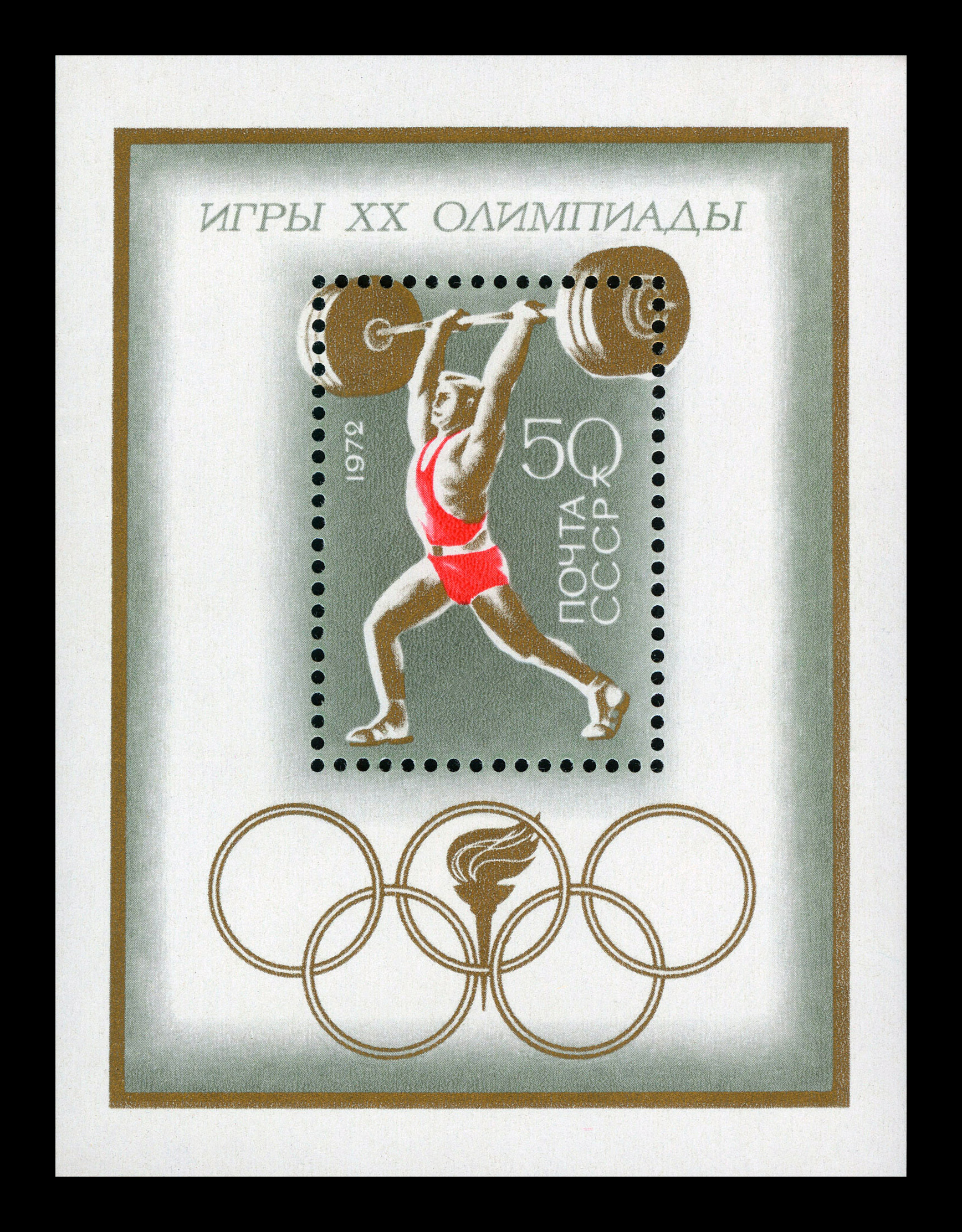 Кат. № Бл 80. Надпечатка красная глубокой печати текста "Слава Советским Олимпийцам, завоевавшим 50 золотых, 27 серебряных и 22 бронзовые награды" на Бл 80.